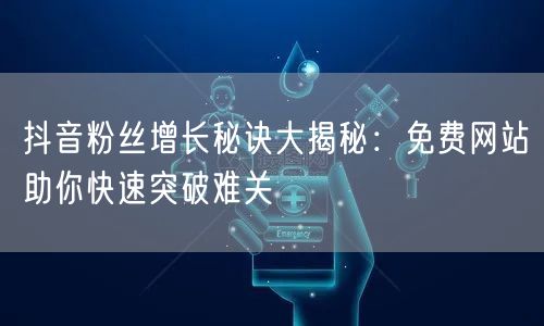 掌握抖音粉丝增长的秘诀,结合免费网站资源,轻松突破难关,让你的抖音账号在众多用户中脱颖而出。快来尝试这些方法,让你的抖音账号迅速崭露头角吧!