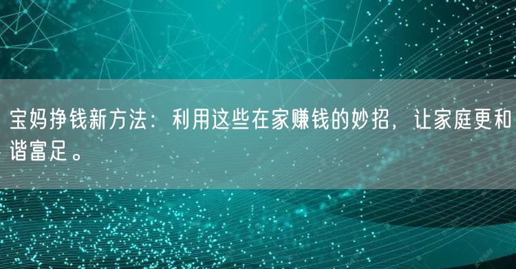 宝妈挣钱新方法:利用这些在家赚钱的妙招,让家庭更和谐富足。
