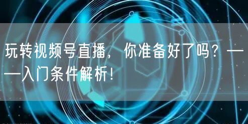 玩转视频号直播,你准备好了吗?——入门条件解析!
