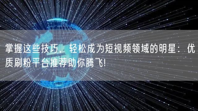 要想在短视频领域中轻松成为明星不仅需要掌握一定的技巧还需要借助优质的刷粉平台进行推广通过不断努力和实践不断提升自己的创作能力和影响力最终在这个领域中实现腾飞!